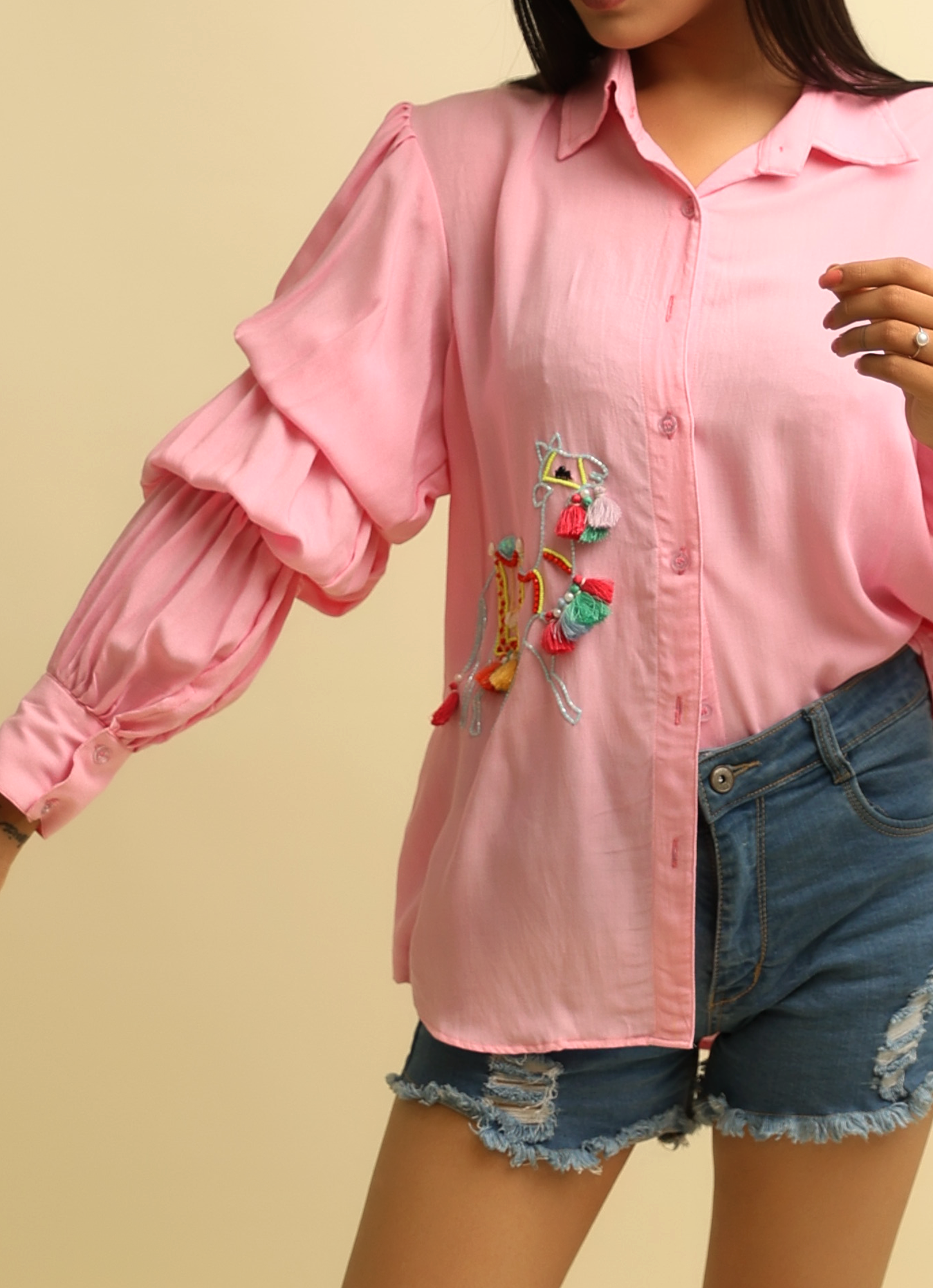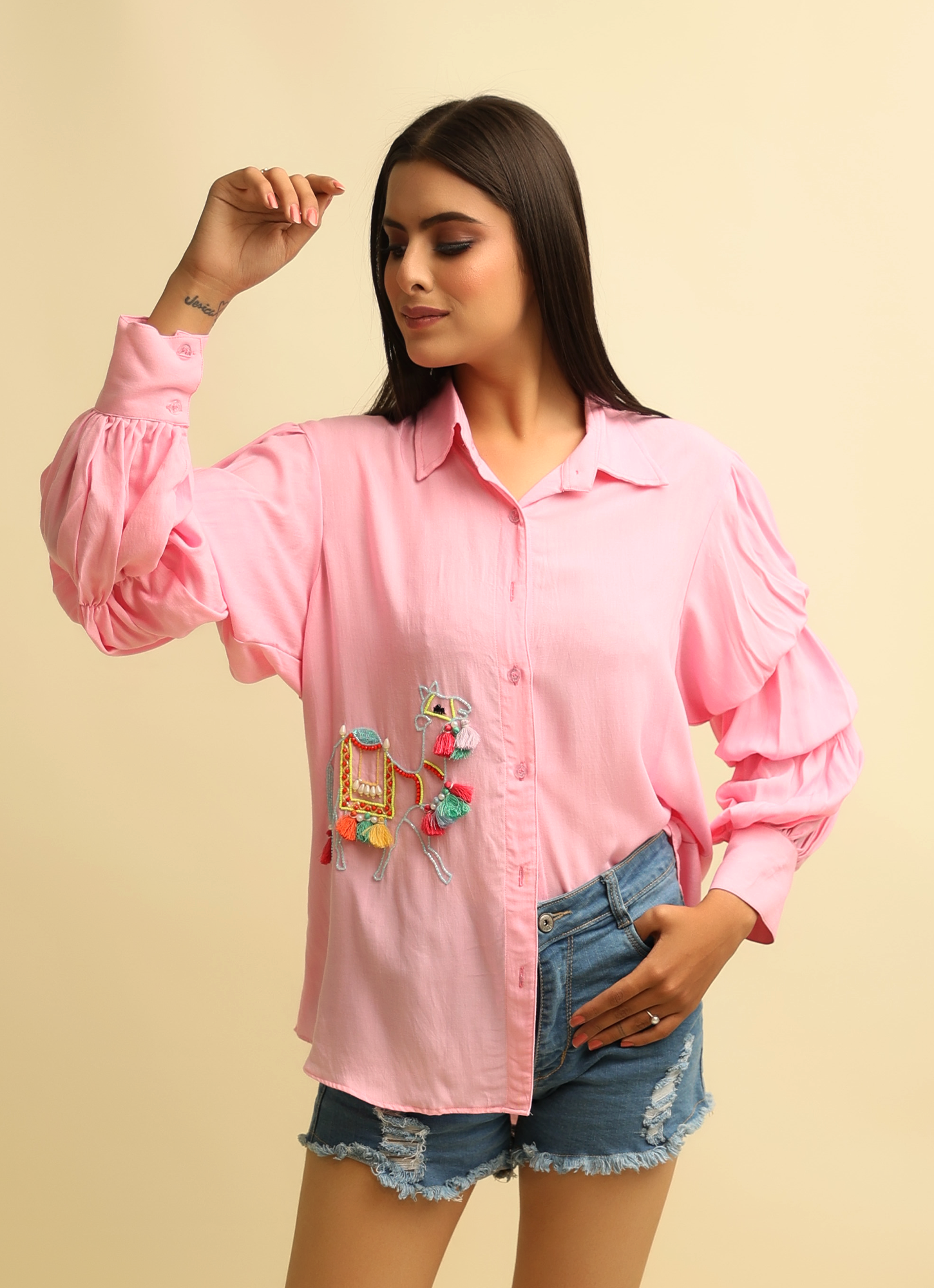 Celebrate culture, craft, and comfort with Samara by Beblee Bee – a beautifully designed shirt featuring a hand-embroidered camel motif with playful tassel detailing. Crafted in soft and breathable cotton rayon, Samara brings together artisanal charm and contemporary elegance.