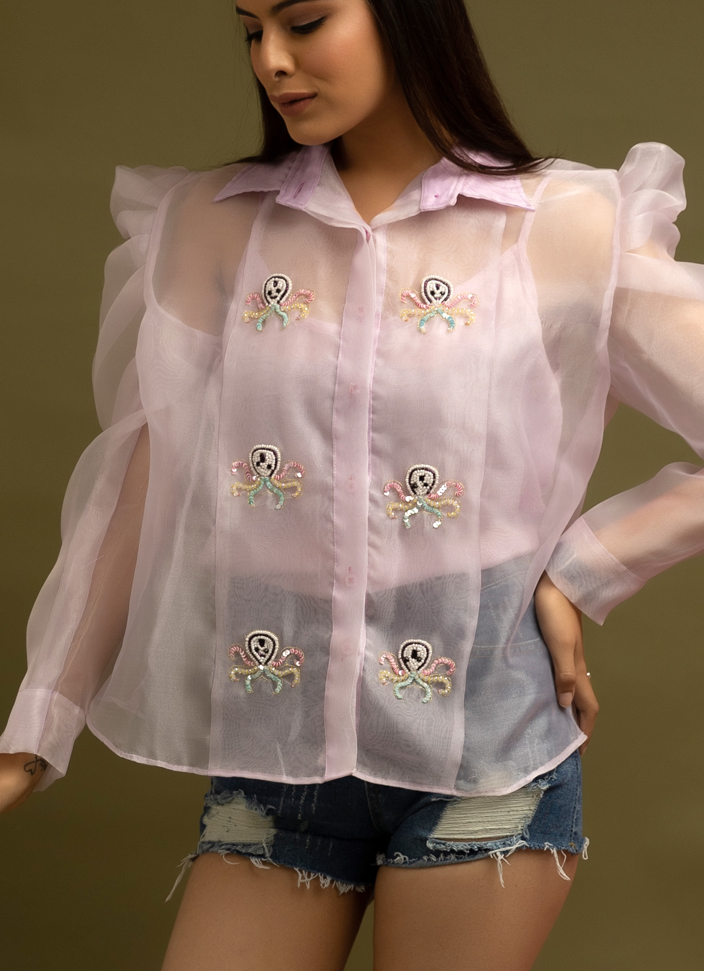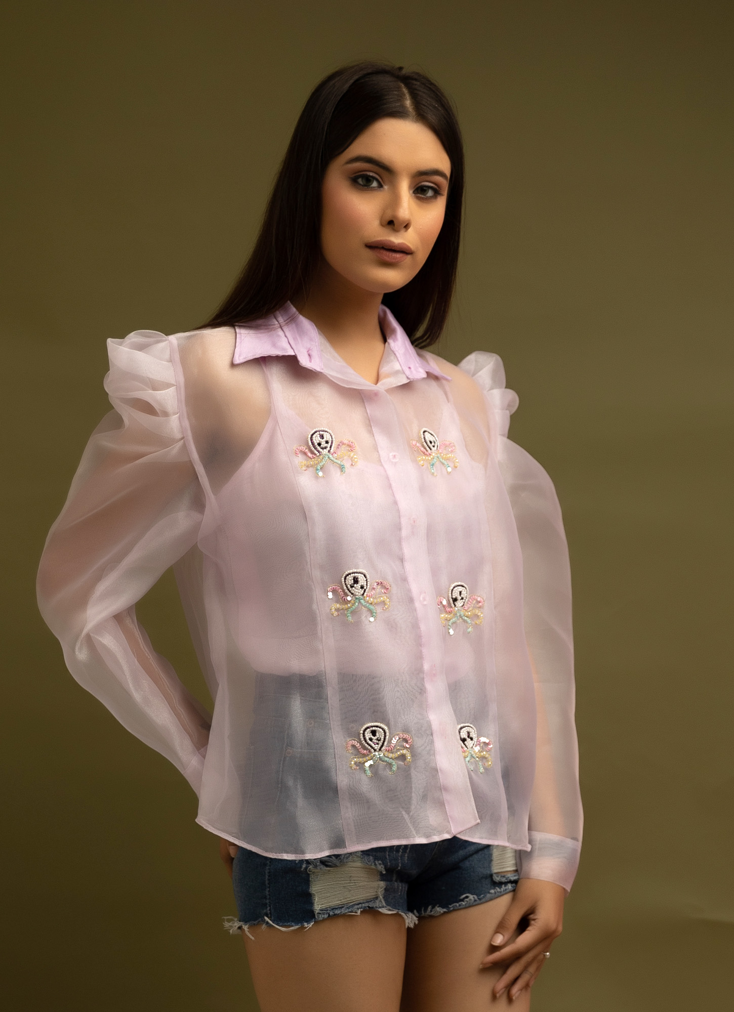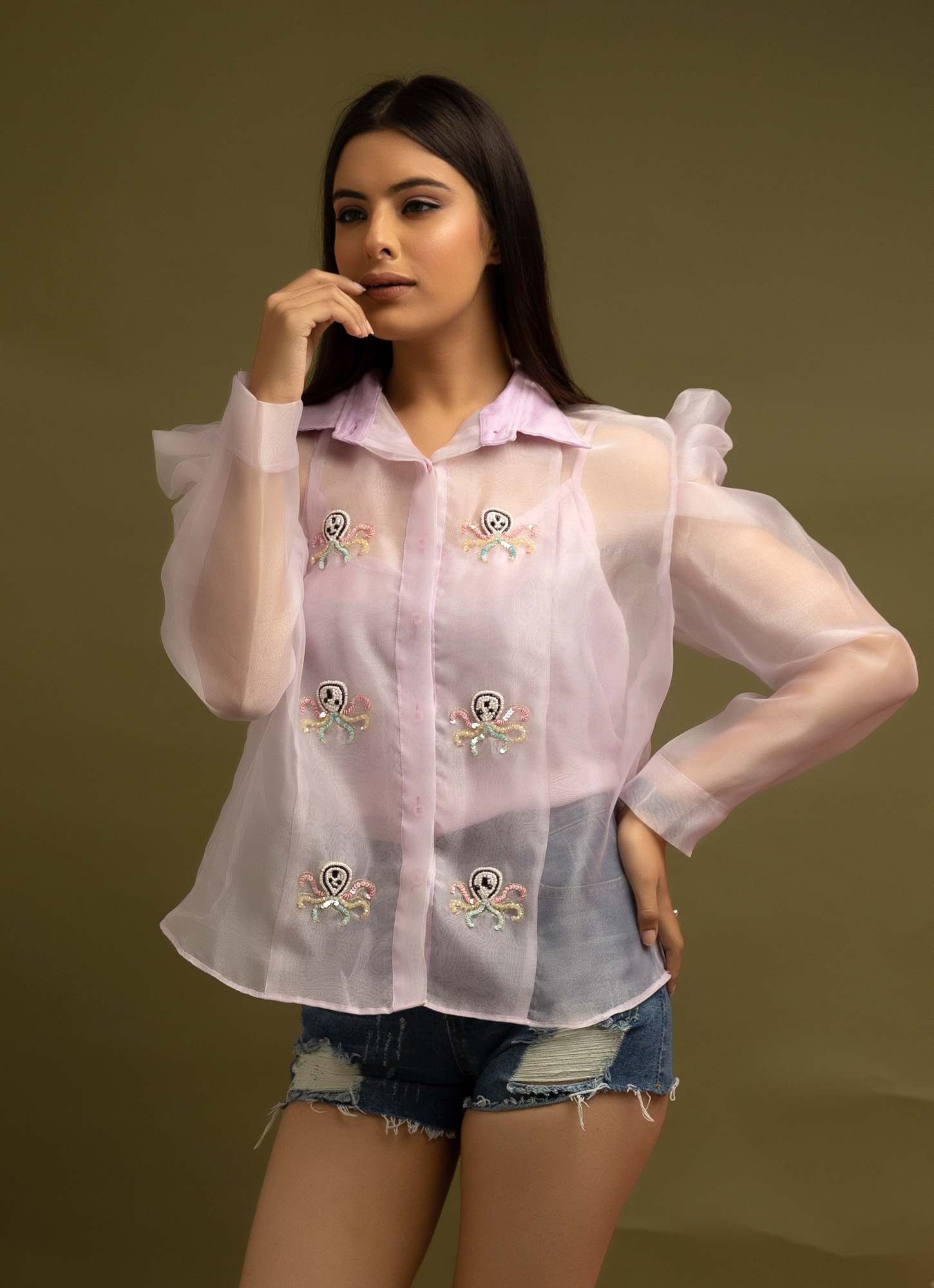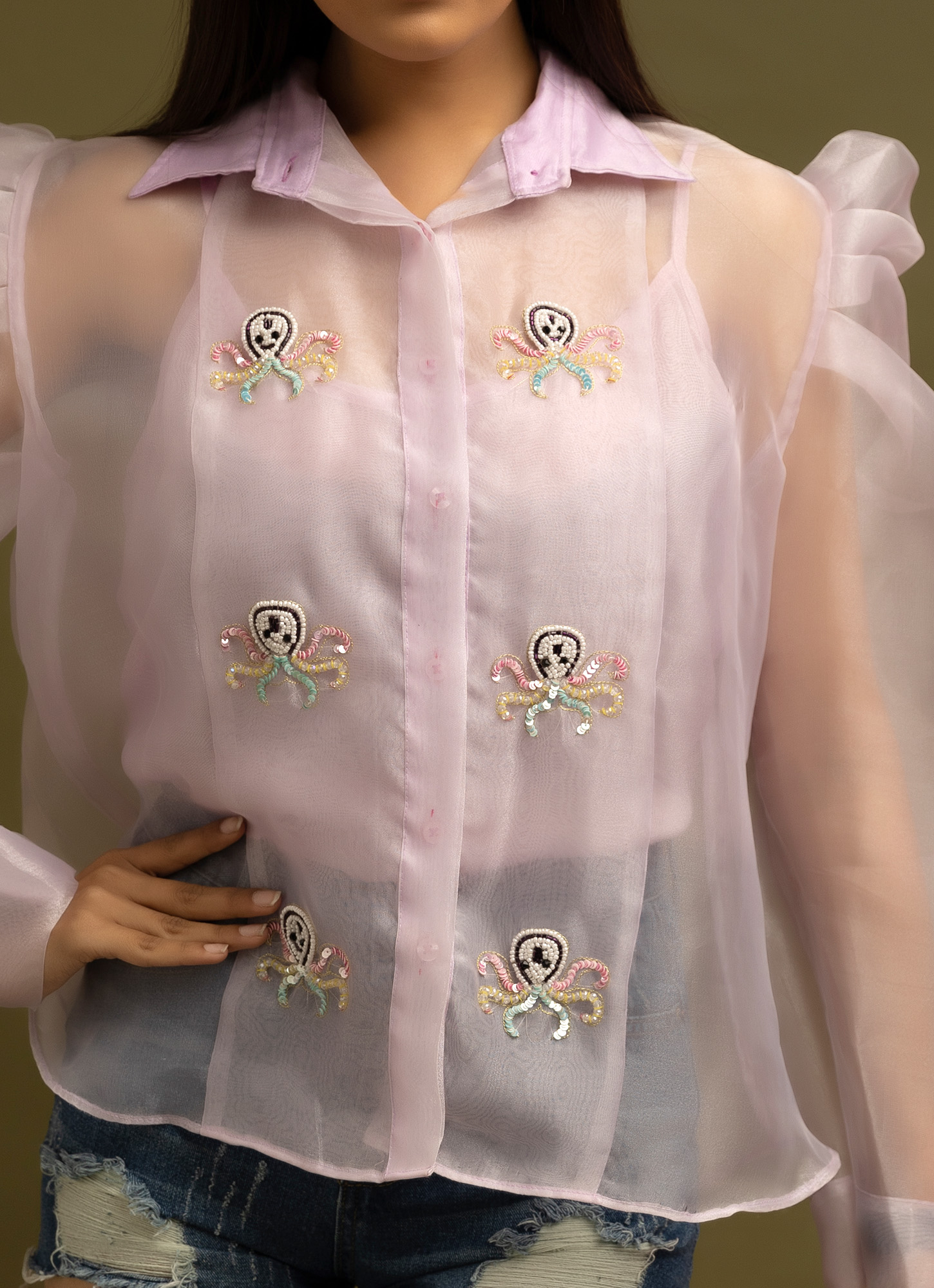 Radiate timeless charm with Shanaya by Bablee Bee – an elegant piece that beautifully captures the art of hand embroidery. Crafted from delicate glass organza, this design features intricate detailing with glass beads, pearls, crystals, and more, creating a soft yet striking sparkle.