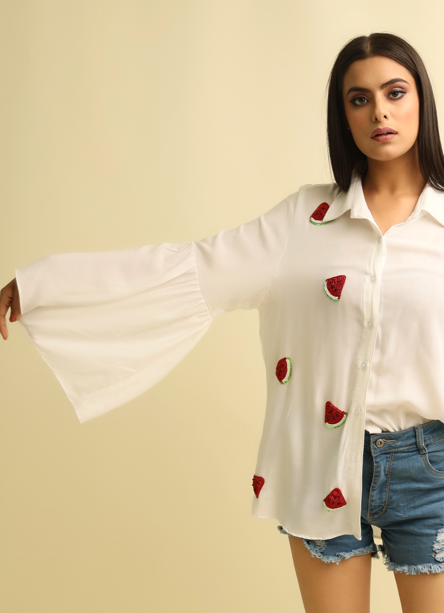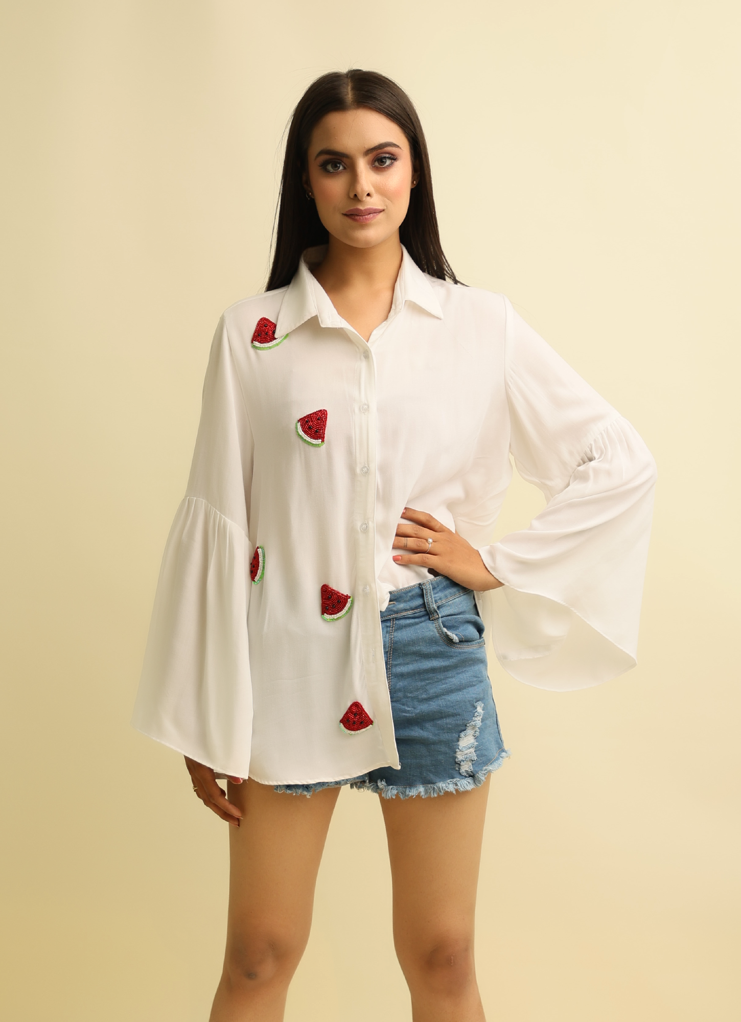 Playful, vibrant, and effortlessly chic — Sia by Bablee Bee is a hand-embroidered watermelon shirt that brings a fresh burst of charm to your wardrobe. Crafted from soft and breathable cotton rayon, this shirt is designed to keep you comfortable while making a stylish statement.