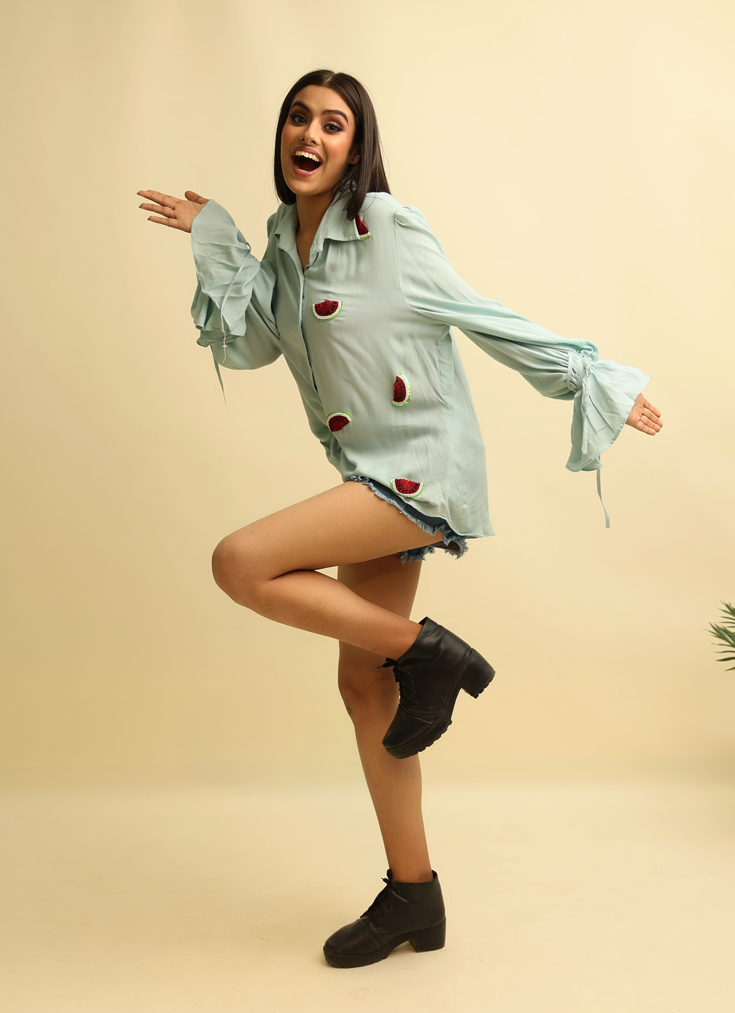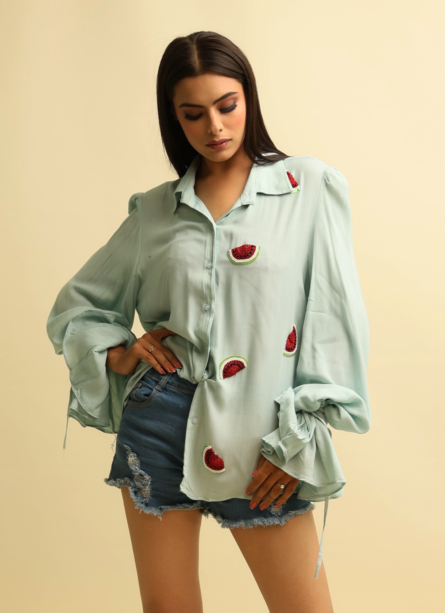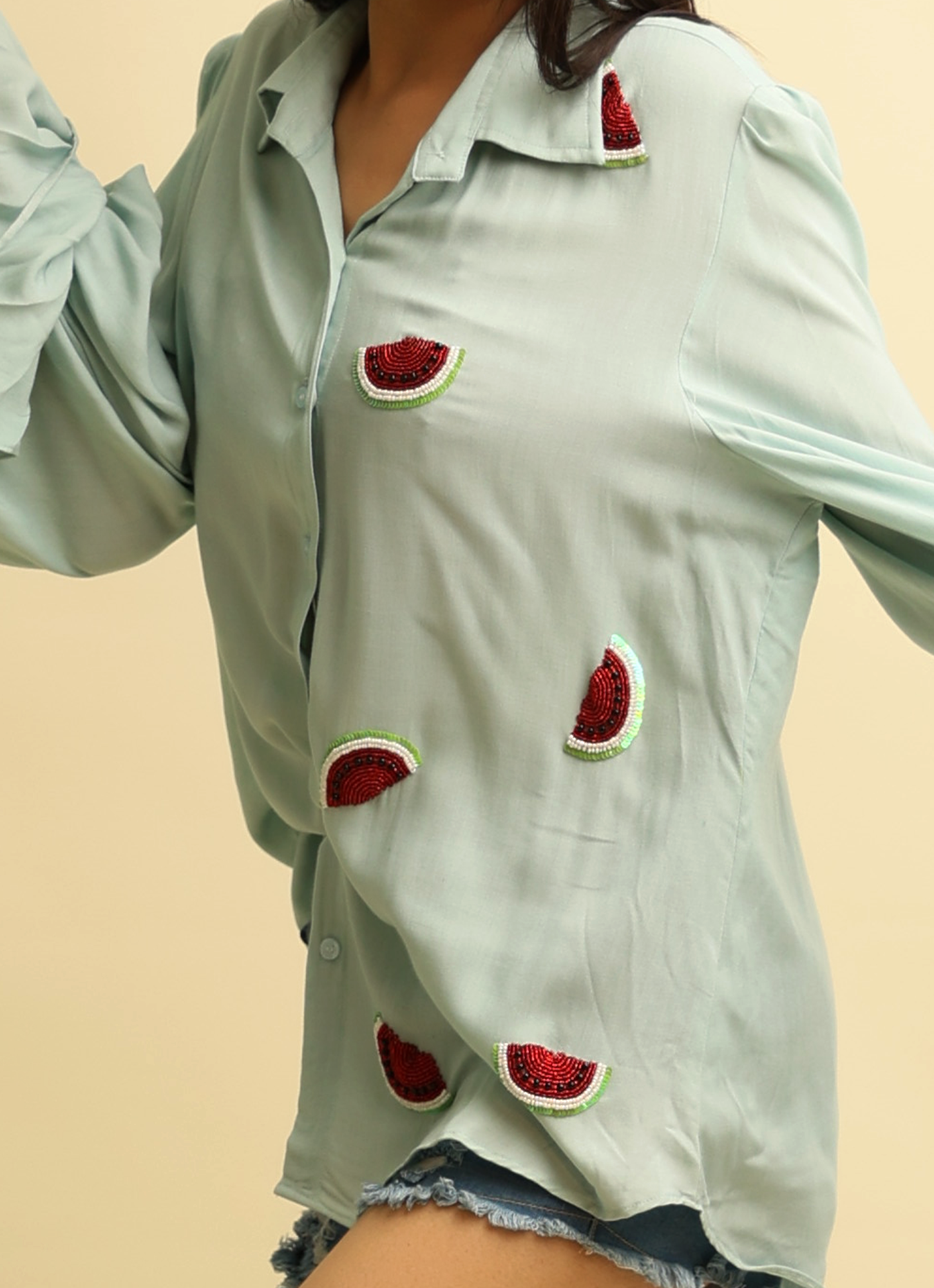 Make every day feel like a sunny getaway with Summer Splash by Beblee Bee – a fresh and fun hand-embroidered watermelon shirt that’s bursting with personality. Crafted from soft and breathable cotton rayon, this shirt keeps you cool and stylish even on the warmest days.